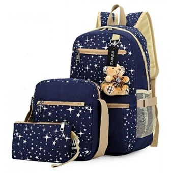Check Price Tibes vintage canvas backpack+shoulder bag+purse 3pcs Blue - intl reviews