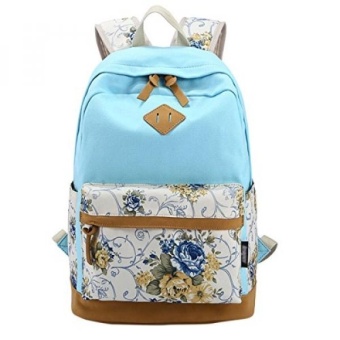 ABage Girls Canvas Backpack Lace Floral Lightweight Bookbag Laptop School Backpacks Sky Blue1 - intl