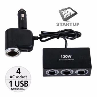☃ ซื้อ Olessonอุปกรณ์เพิ่มช่องจุดบุหรี่4ช่องและช่อง1 USB 1200mAh 12v/24w No.1527 - Black เปรียบเทียบราคา